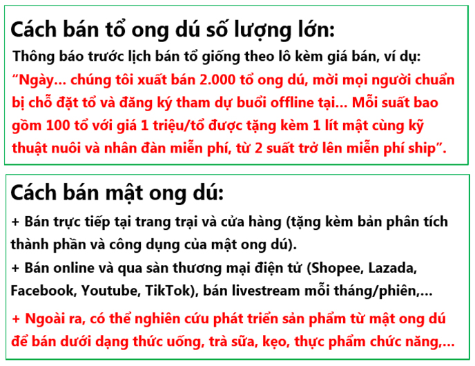 Khi đã có nhiều tổ ong dú, đừng ngại đầu ra. Vì đang có nhiều người liên hệ trang trại để đặt mua số lượng lớn mà không có đủ hàng. Mọi người có thể bán như sau: