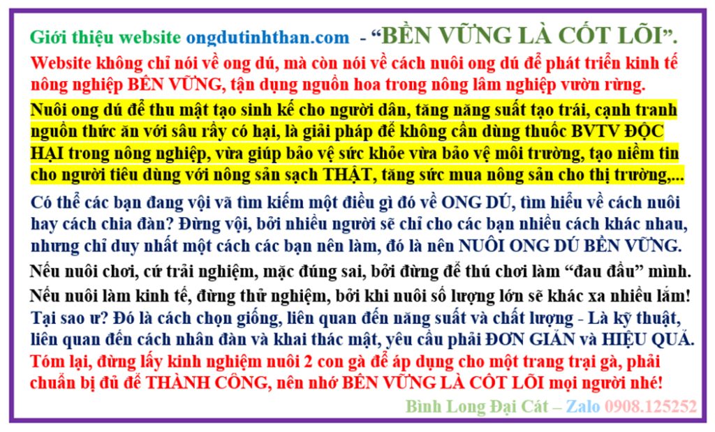 Tóm lại: Đừng áp dụng quy trình nuôi thử nghiệm một vài tổ vào việc nuôi số lượng lớn để làm kinh tế mọi người nhé!